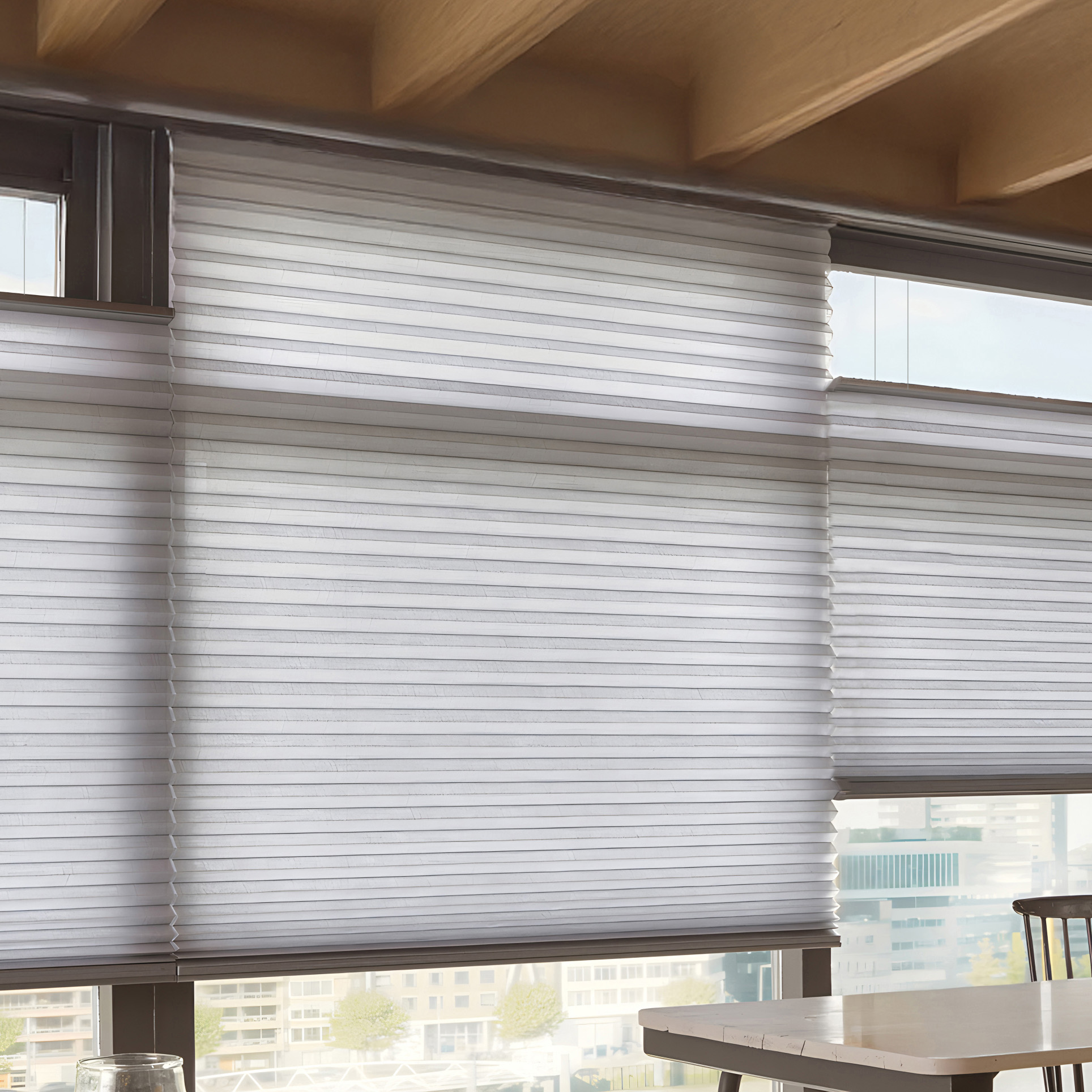 The cellular design creates air pockets that help regulate indoor temperature, improving insulation and energy efficiency. The pleated fabric construction also contributes to noise reduction, offering a quieter and more comfortable environment.